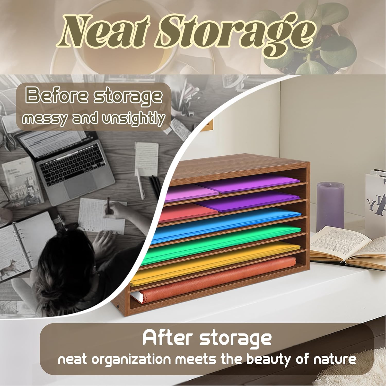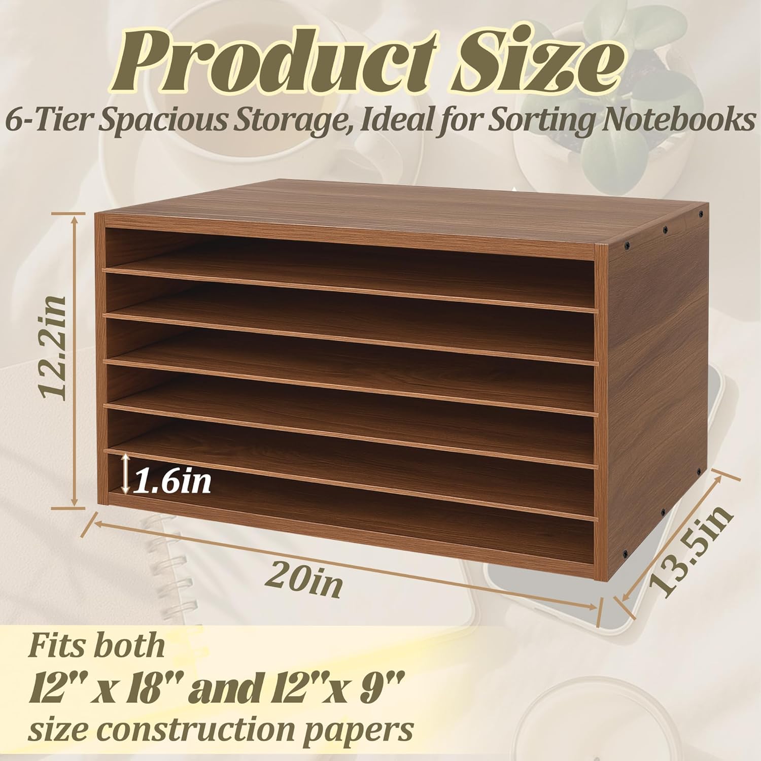 - 【Organized Storage for Paper, Files & More】Upgrade your workspace with this 6-tier horizontal organizer, designed to keep construction paper, folders, binders, and craft materials neatly arranged. Each spacious shelf offers smooth, easy access so you can instantly find what you need—whether it's construction paper for art projects, office documents for meetings, or binders for lesson plans.