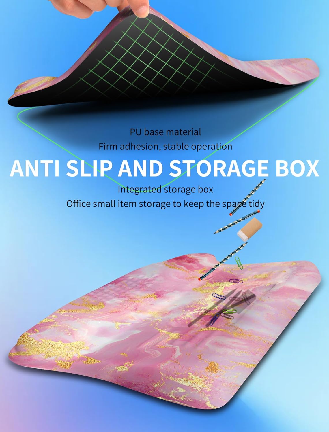 • 【Compact Design with Storage Box 】17.3x9.8x1.2inch (440x250x30mm), compact curved appearance, equipped with a storage box for commonly used office small items (pens/paper clips/staples, etc.), keeping your desktop tidy at all times