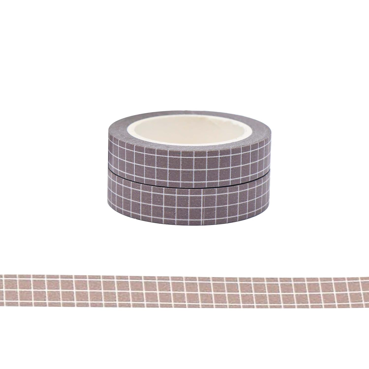 NatSumeBasics 2 Brown Grid Washi Tapes 0.4" x 32ft Adhesive Masking Tapes Decorative DIY Scrapbooking Decor Planners Crafts Supplies Gift Wrapping (Brown)