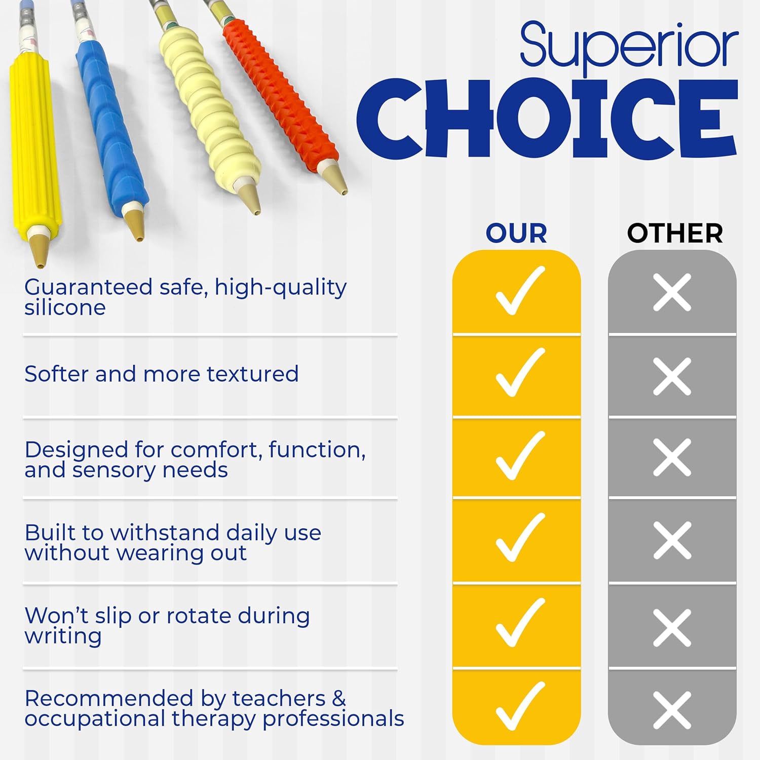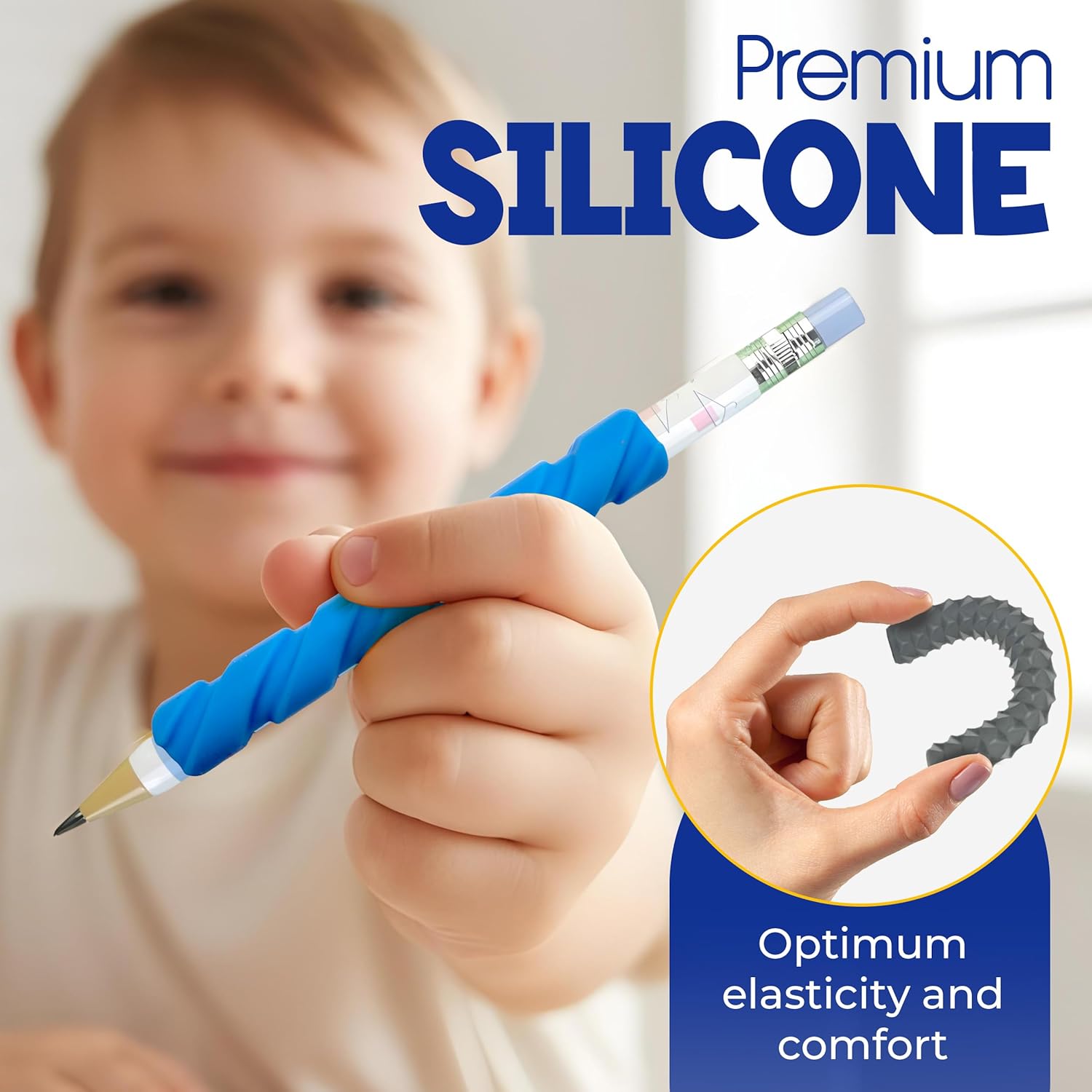 - Premium Silicone Pencil Grips for Kids & Adults – Made from durable, skin-safe silicone, these textured grips are easy to clean, resist stains, and provide strategic tactile feedback to improve grip and calm fidgety fingers during writing or drawing sessions.