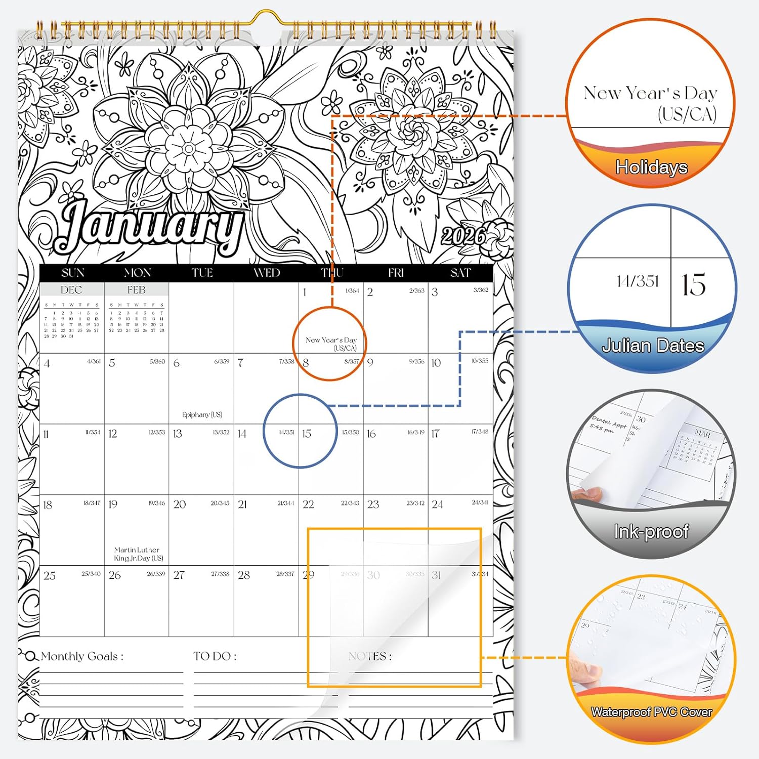- Versatile Calendar: Help busy adults recharge and refocus during work, meetings, or calls. It also serves as a wonderful bonding activity, allowing parents and kids to color, create, and plan together.