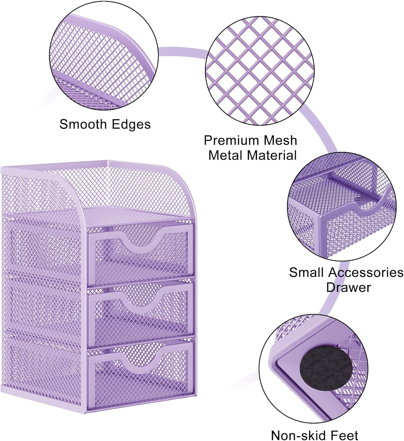 EasyPAG Mesh Desk Organizer with 3 Drawer Office Desktop Organizers and Accessories Stationery Caddy for Office, Home, Students, Purple