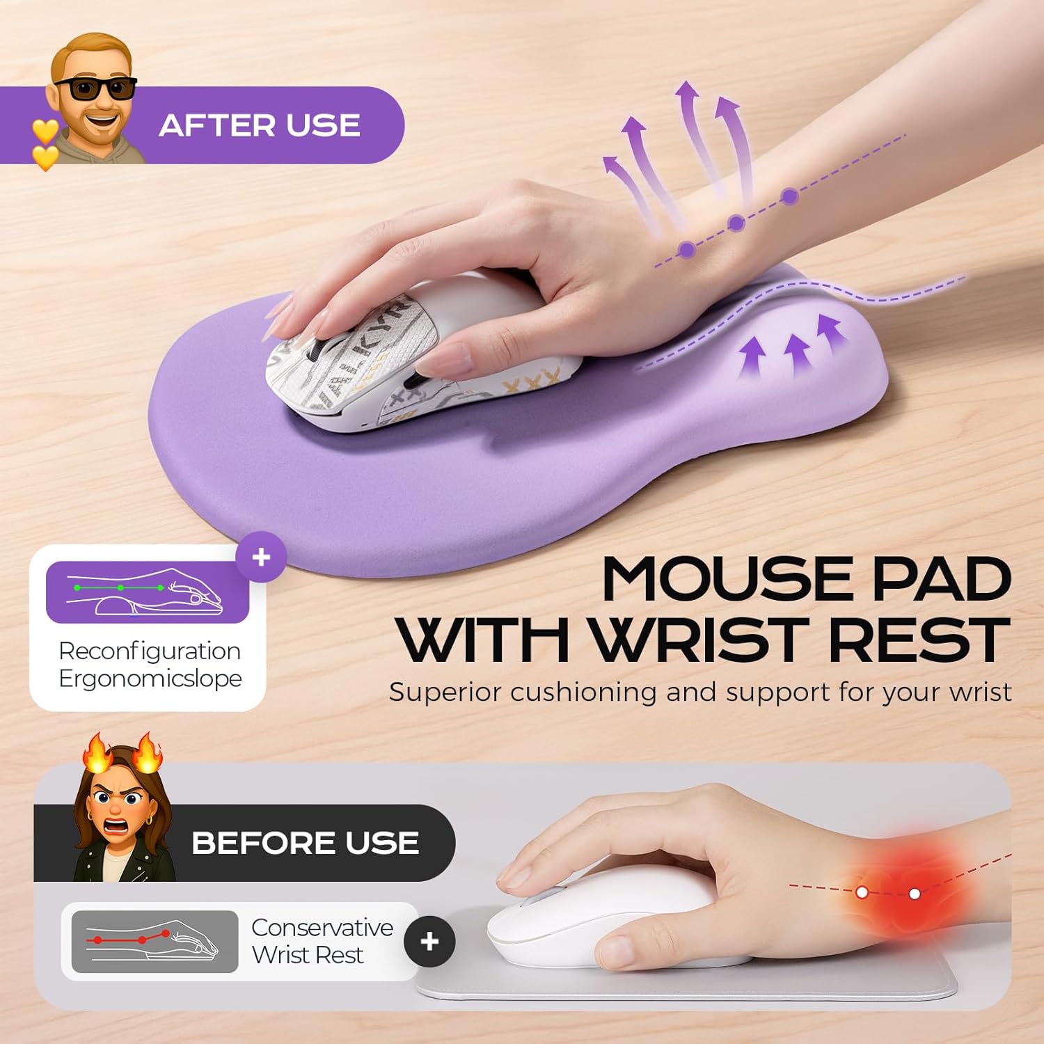 - Comfort Design: the ergonomic mouse pad combines the bent wrist support of the mouse and memory foam buffer to neutralize pressure. Whether for office, gaming, or home use, this mouse pad wrist support is the best choice.