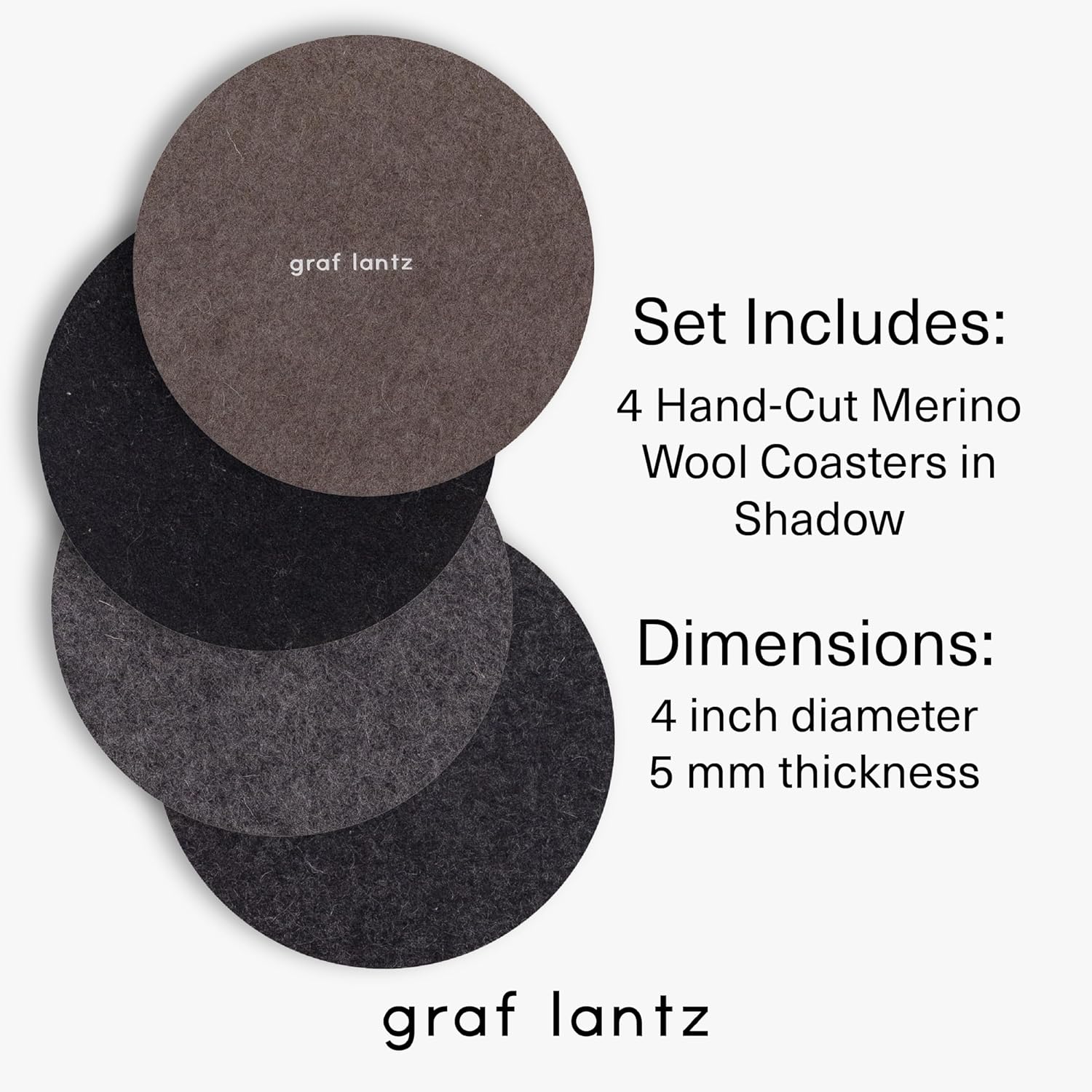 Graf Lantz - Bierfilzl Merino Wool Round Coasters Set of 4 - Shadow (4"x4"x5mm) - Absorbs 30% of Weight - Natural German Wool - Heat Resistant, Sustainable, Reusable - Home Decor
