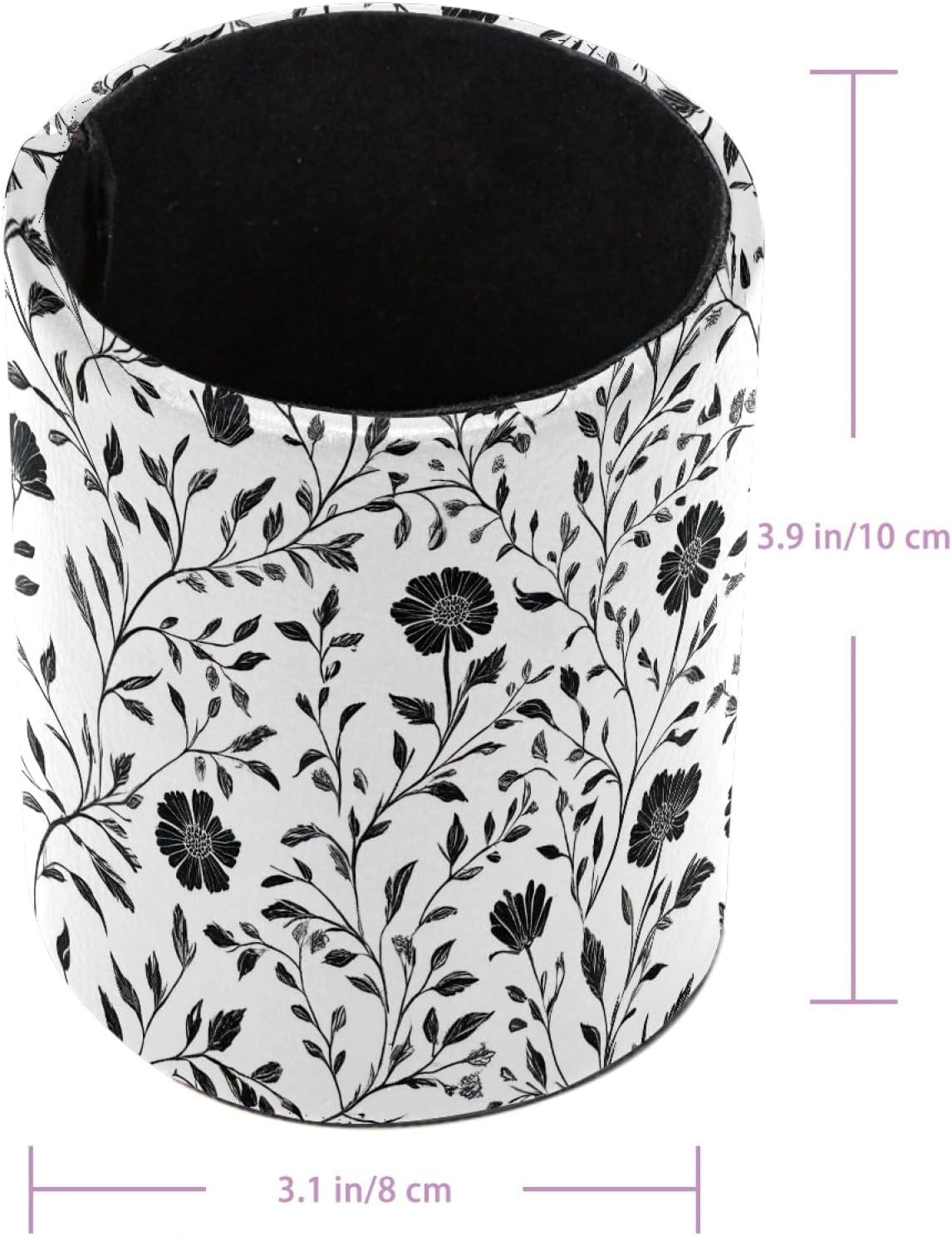 Retro Black Plant Flowers Desk Pen Organizer, Pen Cup Makeup Brush Holders Pencil Holder for Desk, Desktop Supplies & Accessories Workspace Organizers for Office Home School Art Supply