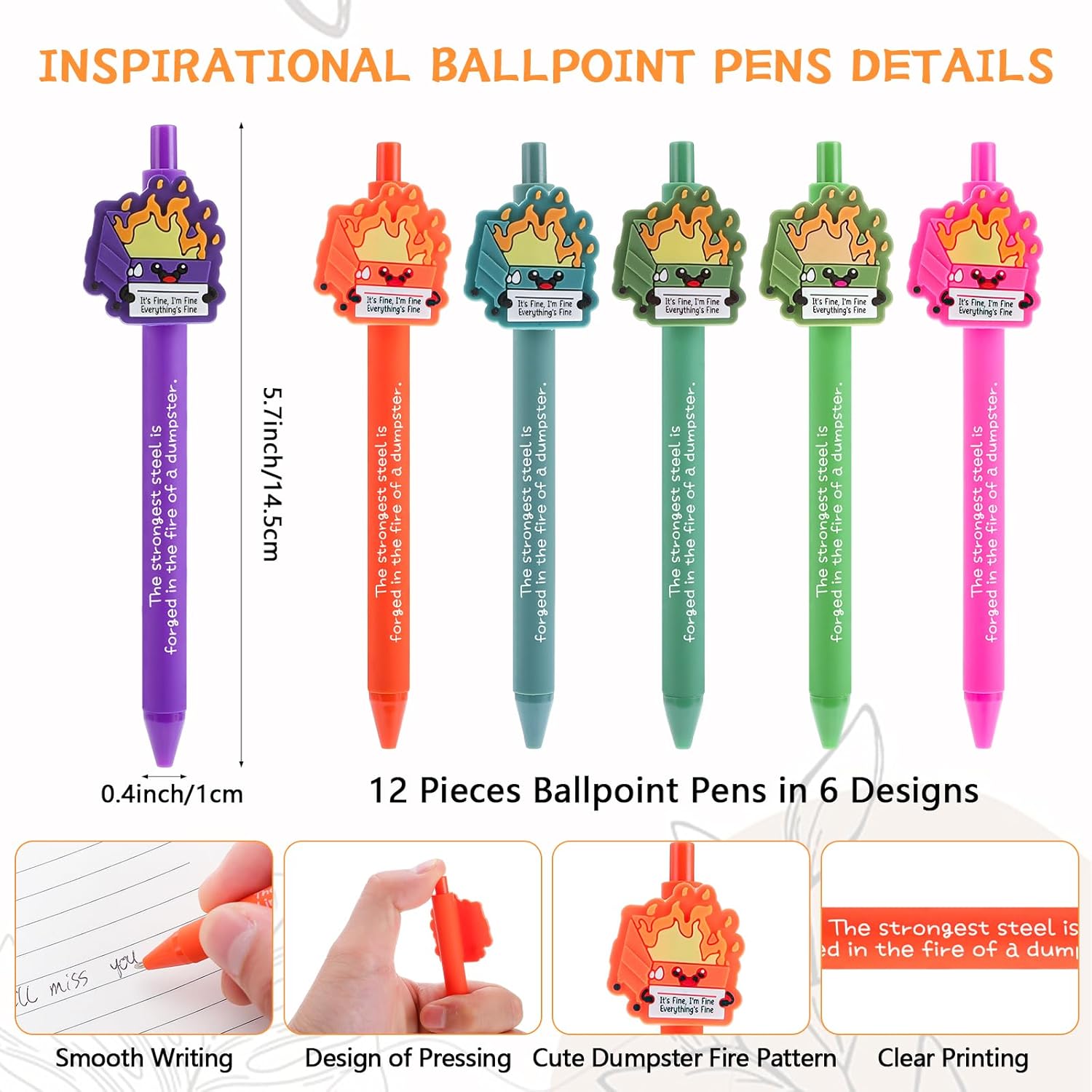 - 【Size Details】This dumpster fire notebook measures approximately 4 x 5 inches, making it easy to carry and fits easily into a handbag, pocket, or other places you need to take it with you. The matching dumpster fire pens measure approximately 5.7 inches, offering a comfortable writing experience and grip.