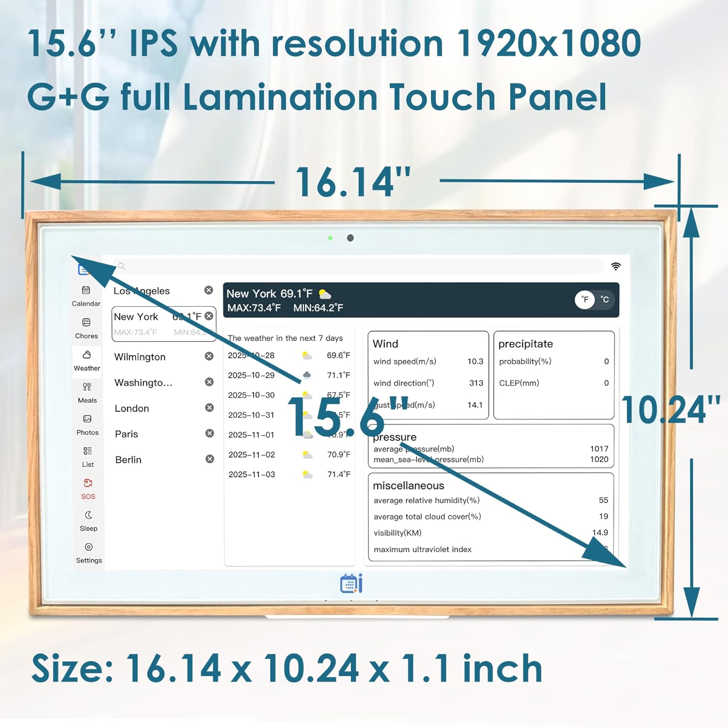 USIN 15.6 inch Wooden Digital Calendar, Wall Touch Screen Home Organizor, Family Chore Charts and Meal Planner, Interactive Display schedule, Desk and Wall Mounted, Electronic Calendars with Free App