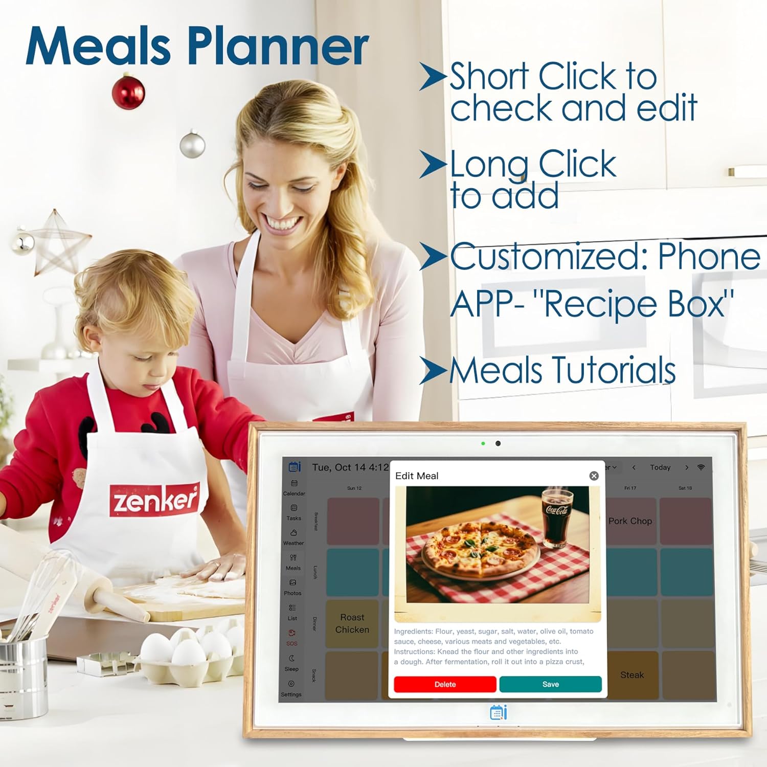 - 【Interactive Rewards & Meal Planner】: Big Family digital calendar - Create, assign, and track chores with customized rewards to motivate and celebrate your kids’ accomplishments. Cooking Tutorial & Create and display family Meal plans & Customized Meal Items via Free Phone App "Recipe Box".
