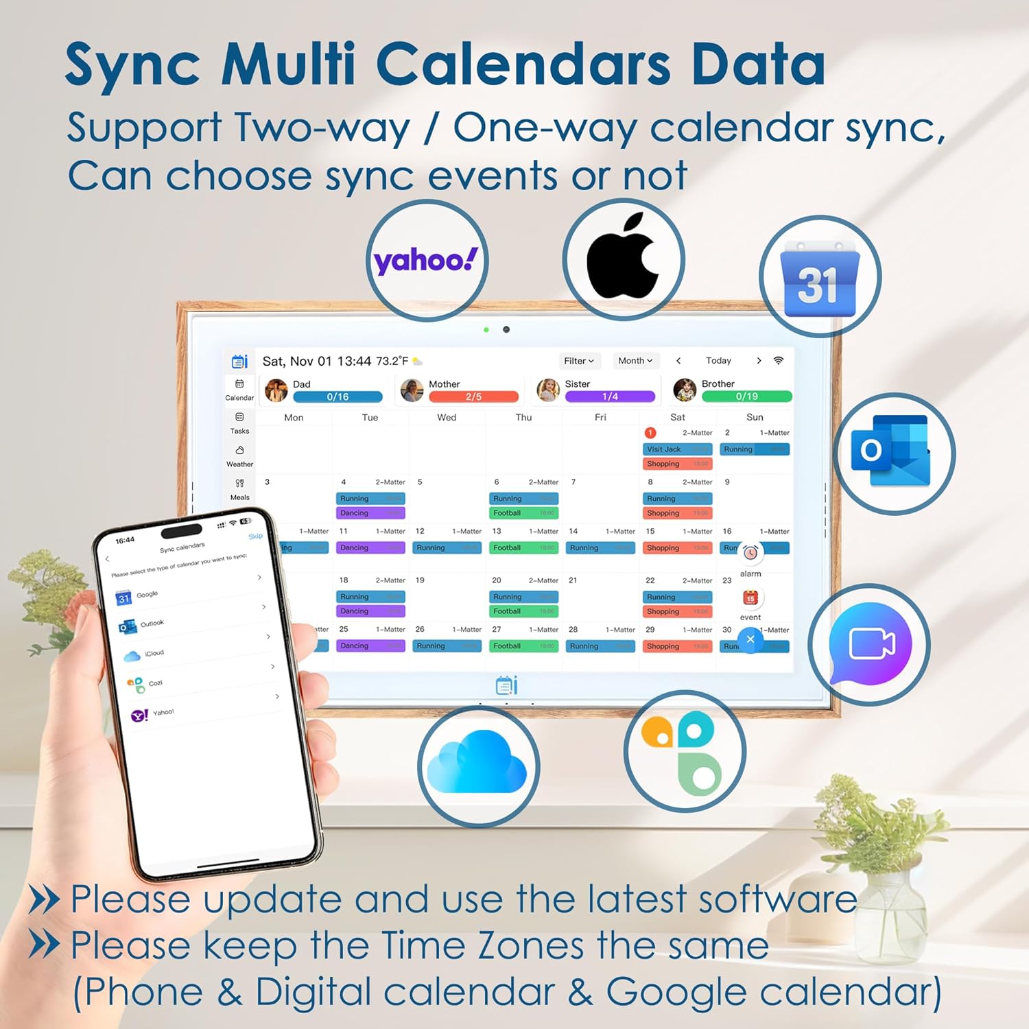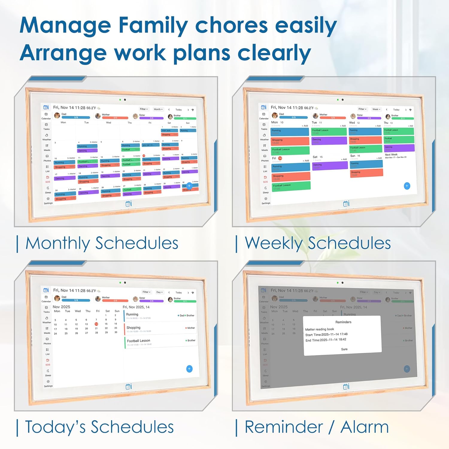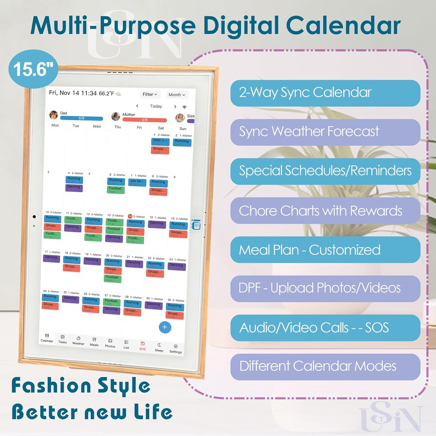 - 【All-in One Calendar and Free App】: Free Features: Sync Calendar/Weather, Matters Management, Digital Photo Frame, Cooking Tutorial, Customized, Greeting Card, Rewards Celebration, Reminder, Audio/Video Call.