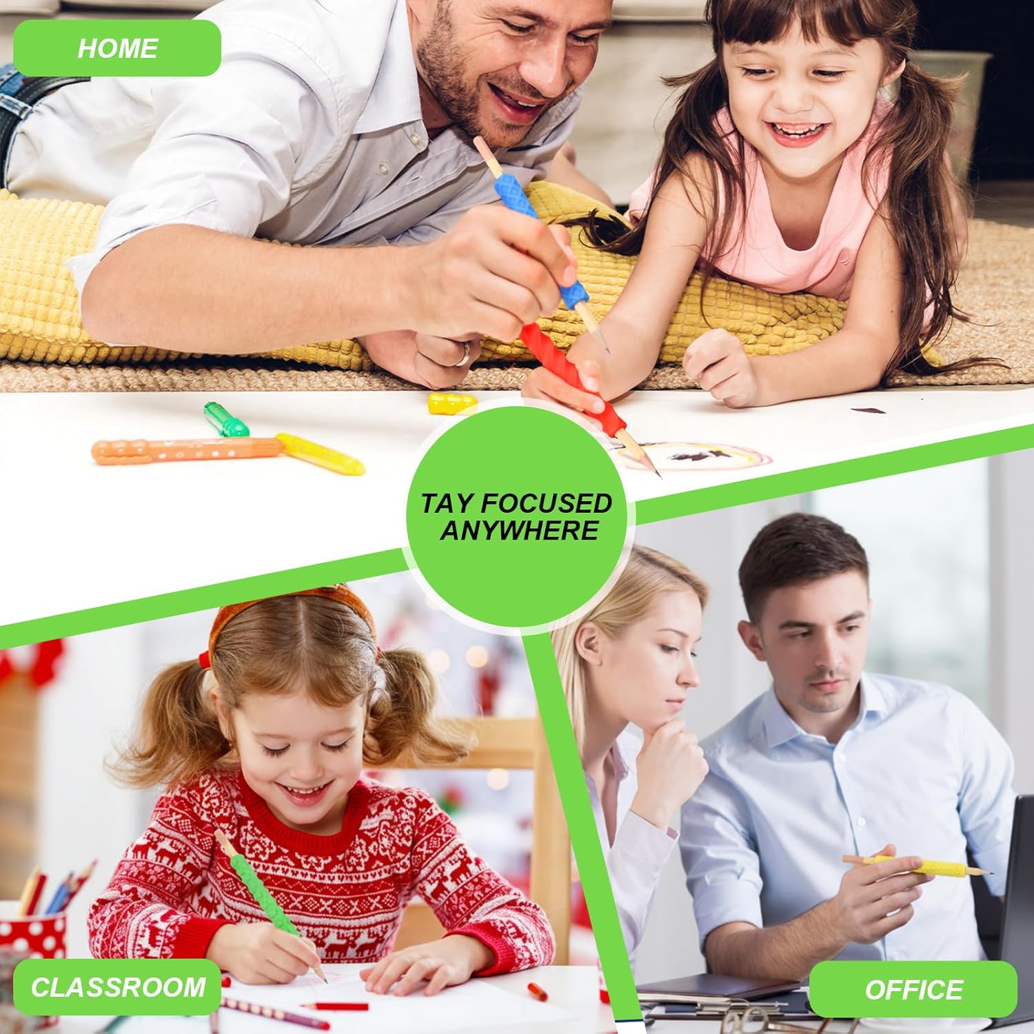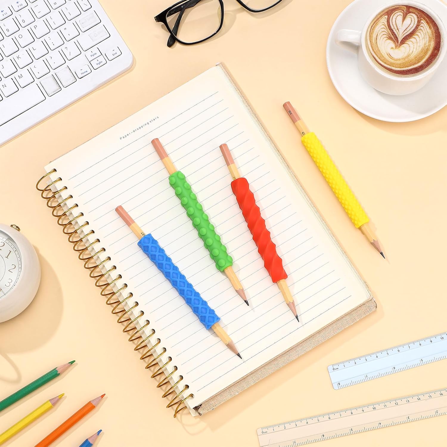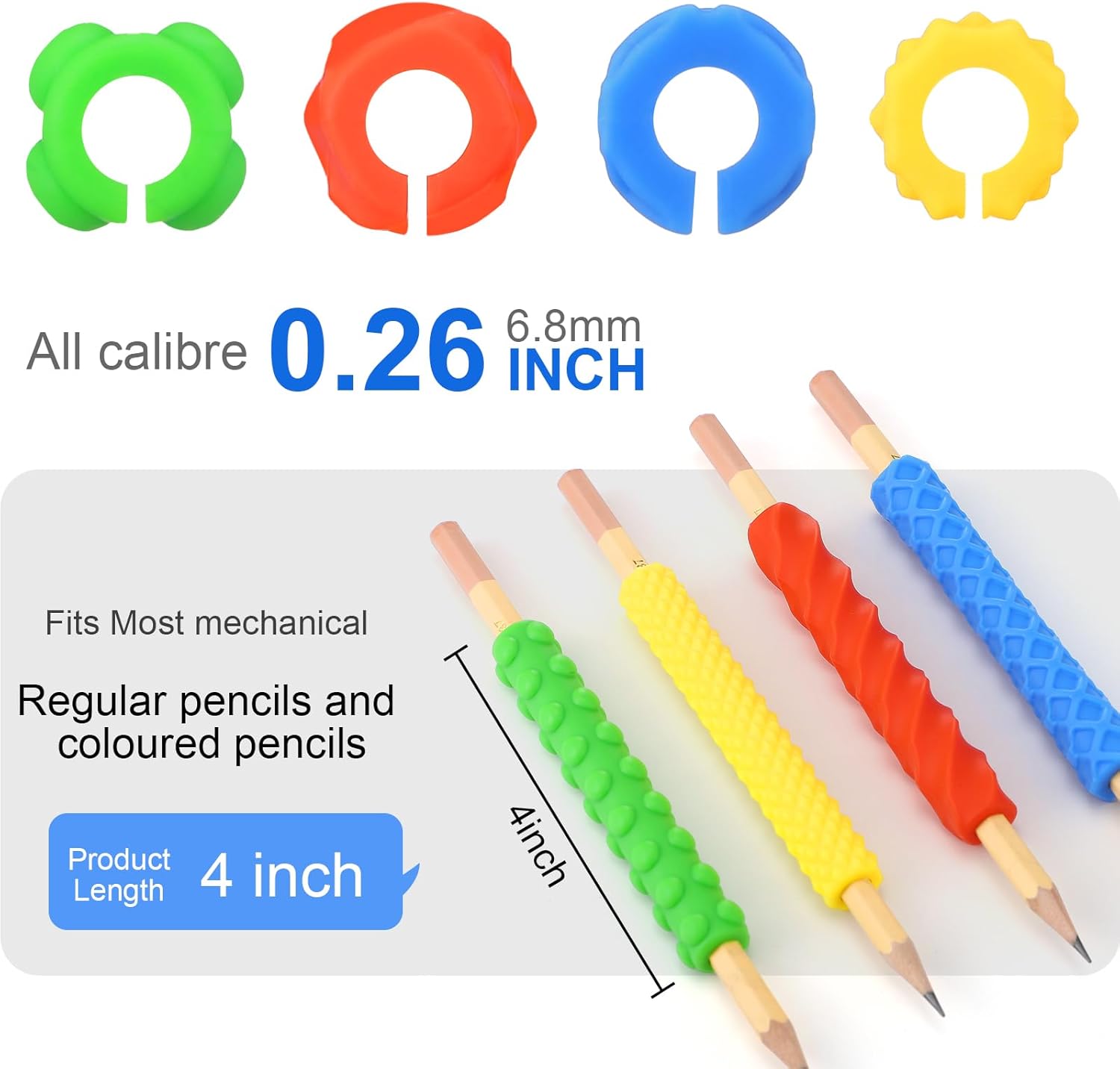 - Fidget Pencil Grips with Pencils: this quite fidget pencil set includes 4 different textured silicone pencil grips and 4 pencils; It meets a variety of needs, whether for note-taking, sketching, stress relief, or as a practical gift; Perfect for inclusion in Easter egg baskets, party favors, classroom rewards, Christmas stocking stuffing, or office gifts