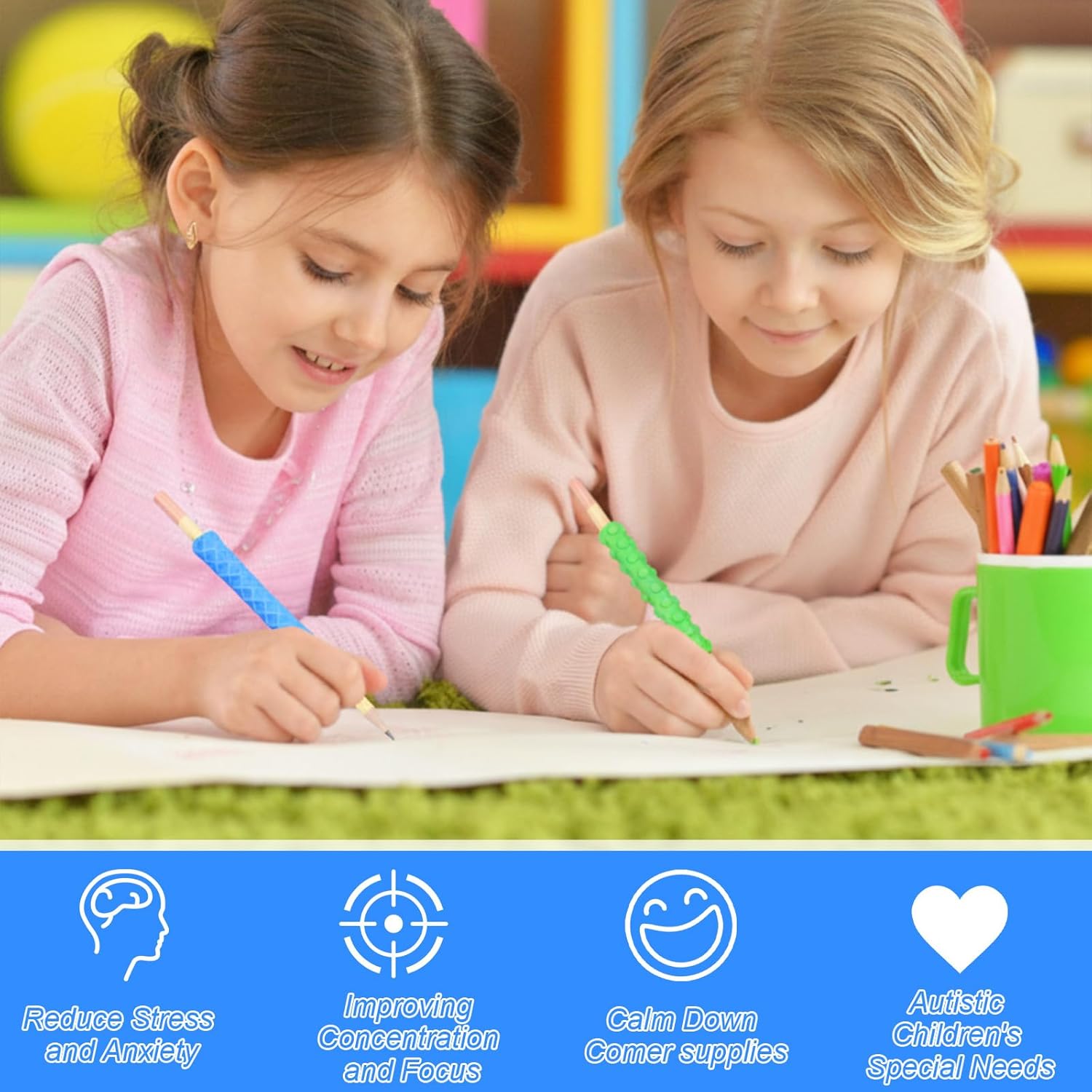 4 Pack Textured Fidget Pencil Grips with 4 Pencil, Silicone Sensory Fidget Toys for Adults Autism Calming, ADHD Tool, Anxiety Relief, Quiet Classroom, Quite Tool Gifts for Adults & Teens