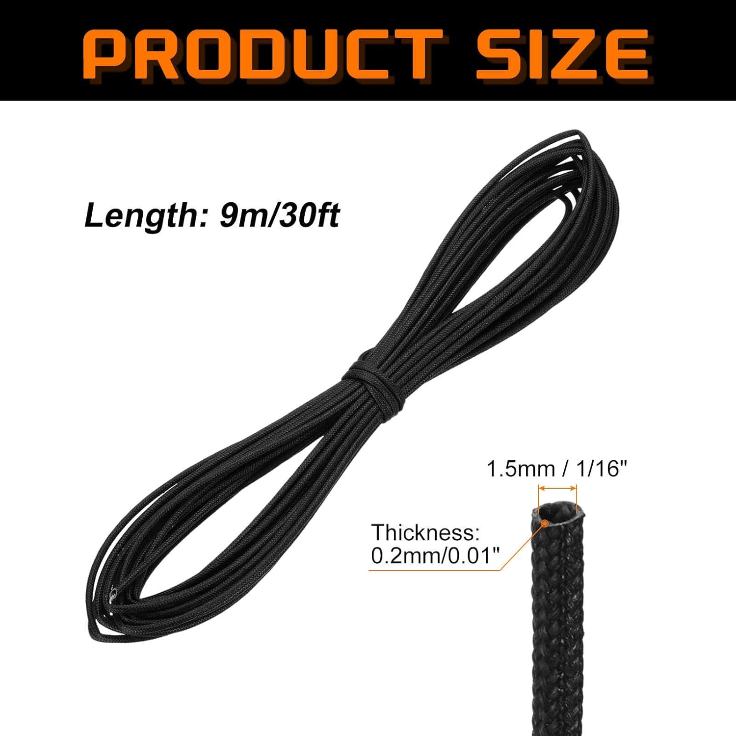 MECCANIXITY 30ft Braided Cable Sleeve, 1/16" ID 200C High Temperature 1500V Fiberglass Wire Insulation Cord Protector Organizer Wires Management for Motor Engine Fuel Line, Black