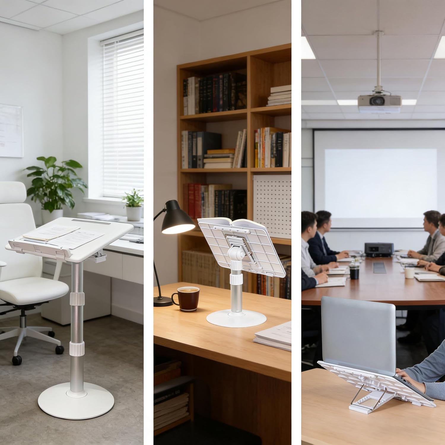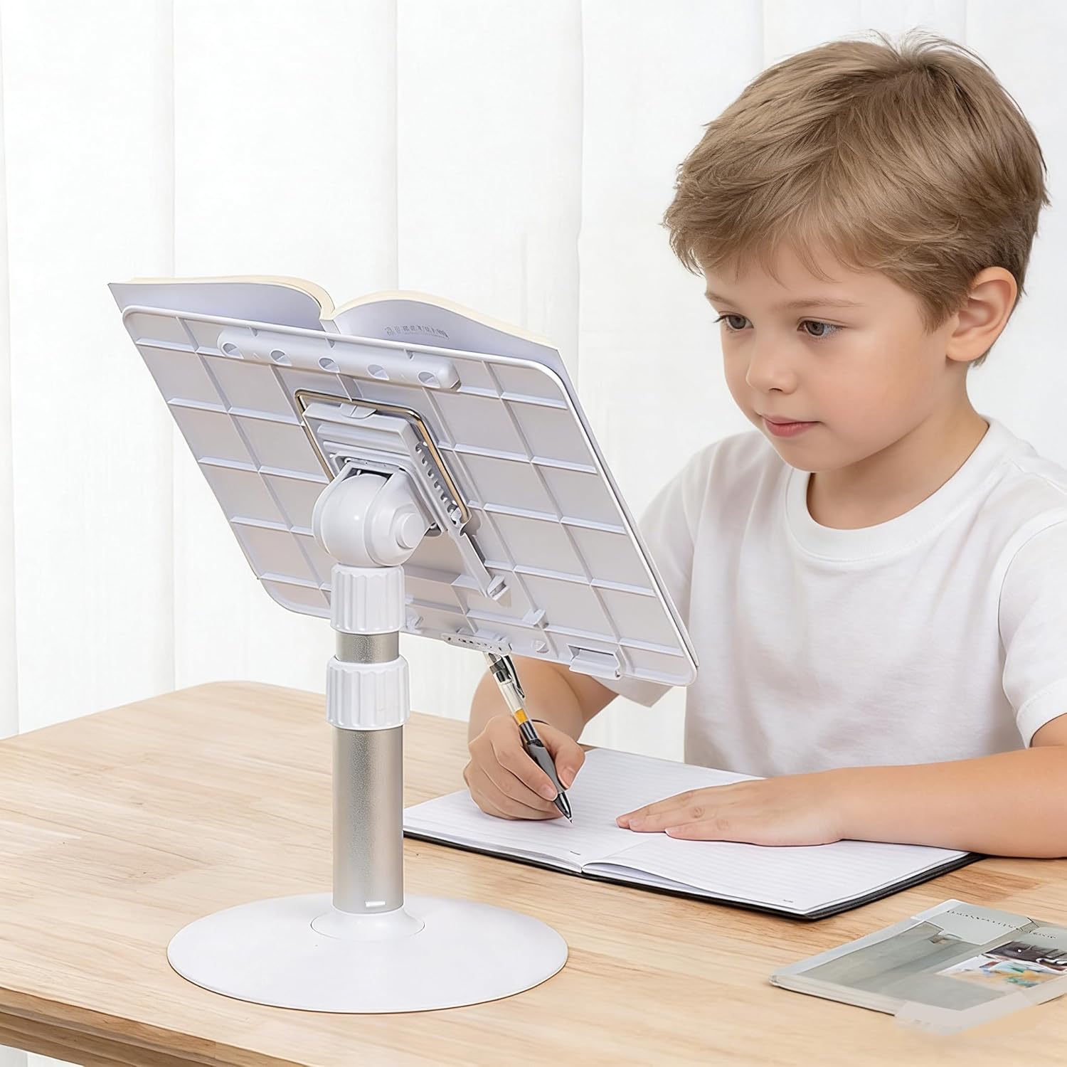 Book Stand for Reading Hands Free Height Adjustable,Laptop Stand for Desk,Ergonomic Cookbook Stand Recipe Book Holder with Elastic Page Clips for Magazines, Tablets