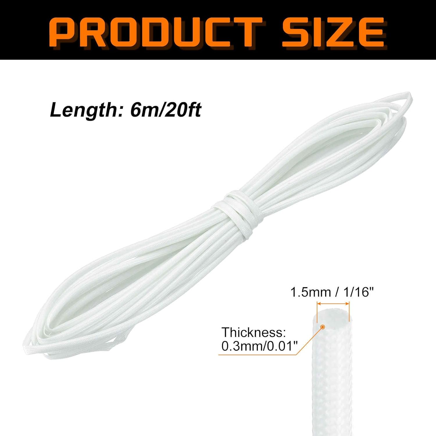 MECCANIXITY 20ft Braided Cable Sleeve, 1/16" ID 200C High Temperature 1500V Fiberglass Wire Insulation Cord Protector Organizer Wires Management for Motor Engine Fuel Line, White