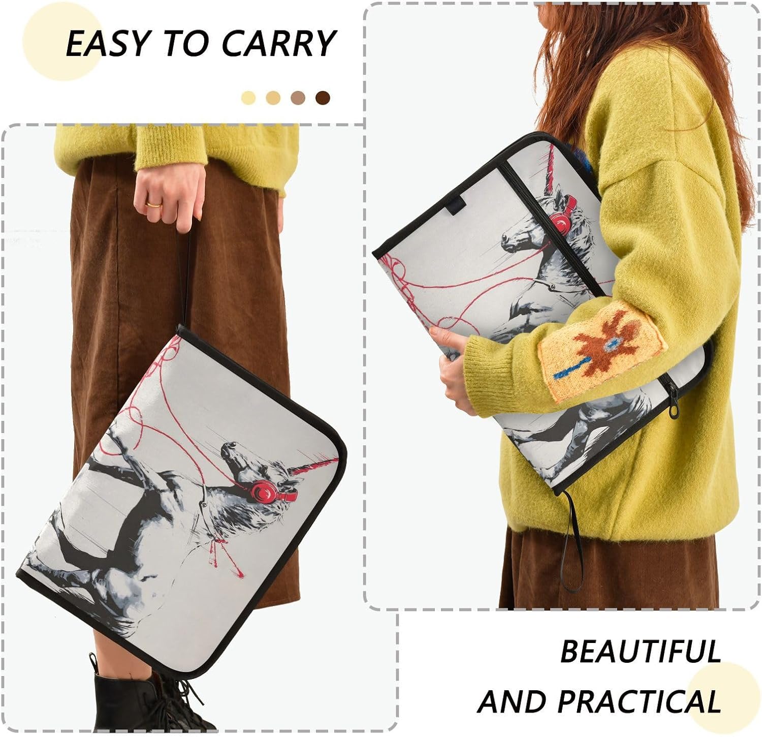 Horse Headphone Expandable Filing Folder, Funny & Cute Design with Sticky Labels, 13-Pocket A4 Letter Size Document Organizer for Office, Boys